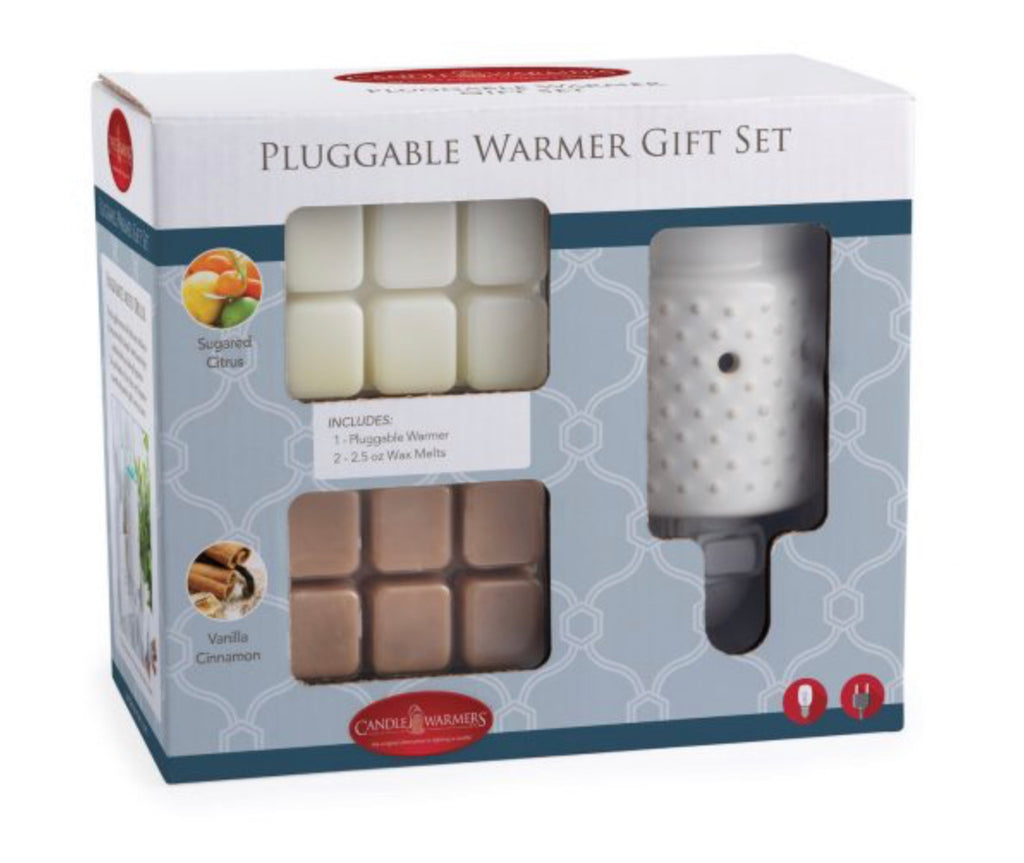 PLUGGABLE WARMER GIFT SET - WHITE HOBNAIL W/ 2 WAX MELTS