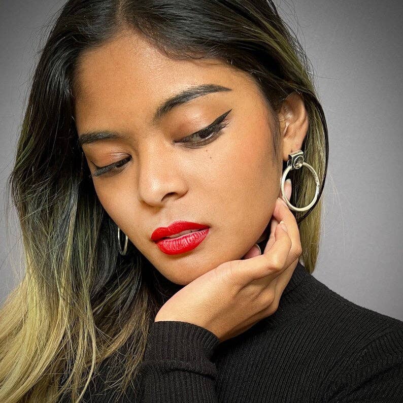 Vintage 80's, 90's Large Silver Hoop Post Earrings with Swarovski Crystal, JohnnyGirl