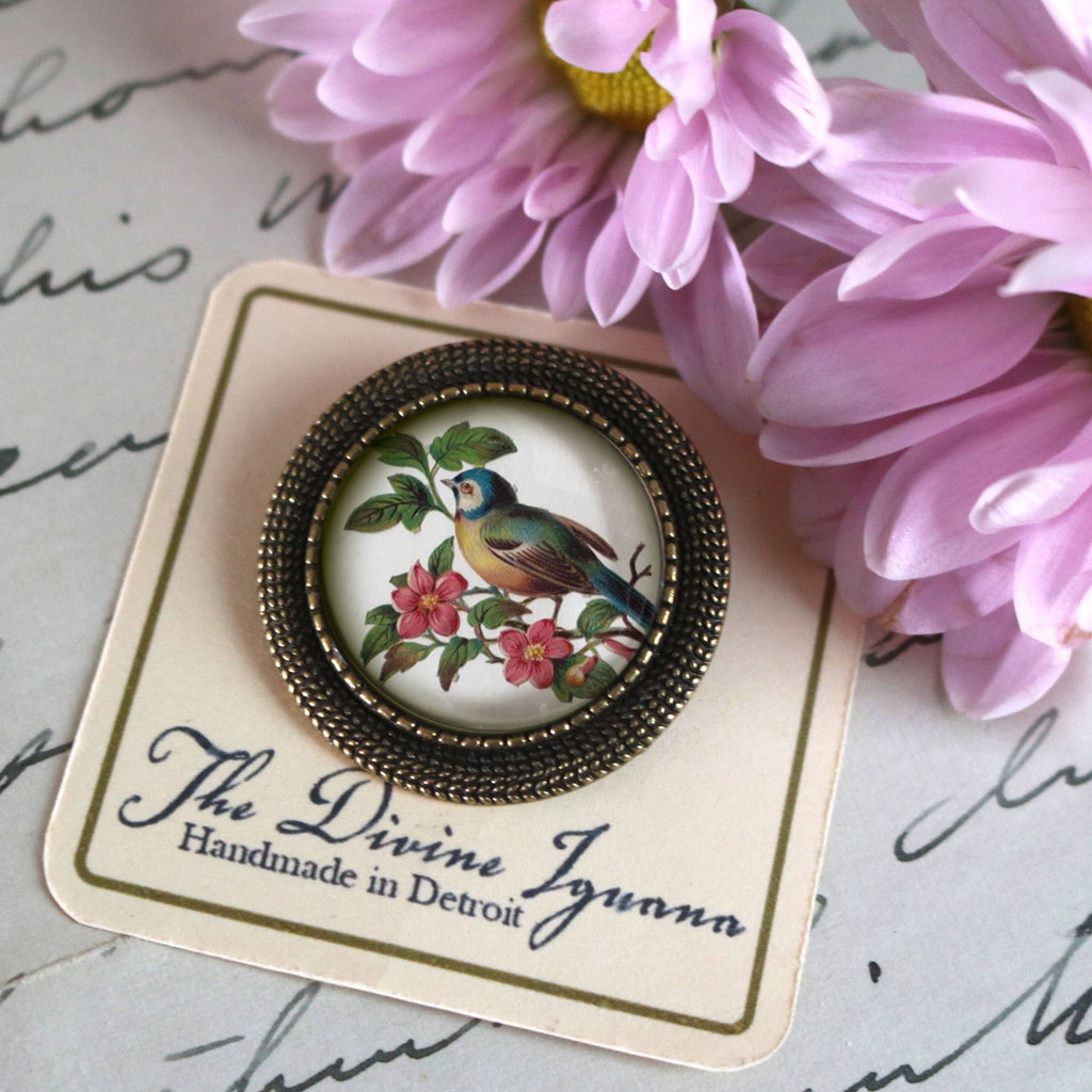 The Divine Iguana - Bluebird Cottage Core Glass Cabochon Brooch