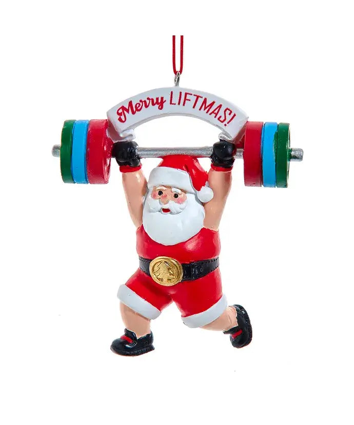 Kurt S. Adler, Inc. - 4.125" Resin Weightlifting Santa Ornament