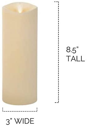- FLAMELESS CANDLE: Features Real Flame Effect Moving Flame technology patented by Luminara. Unscented and made from 100% paraffin real wax, in a Large size of 3 inches x 8.5 inches.