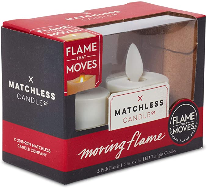 - TEA LIGHT SET: 2 pack of 1.5 inch x 2.0 inch unscented Moving Flame tealights with a smooth ivory white plastic finish. Features Matchless' "Flame That Moves" effect. Batteries included.