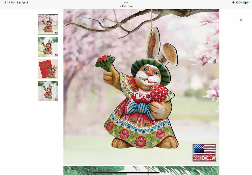 Mommy Easter Bunny Hand Made Ornament- 3 D effect made in the USA