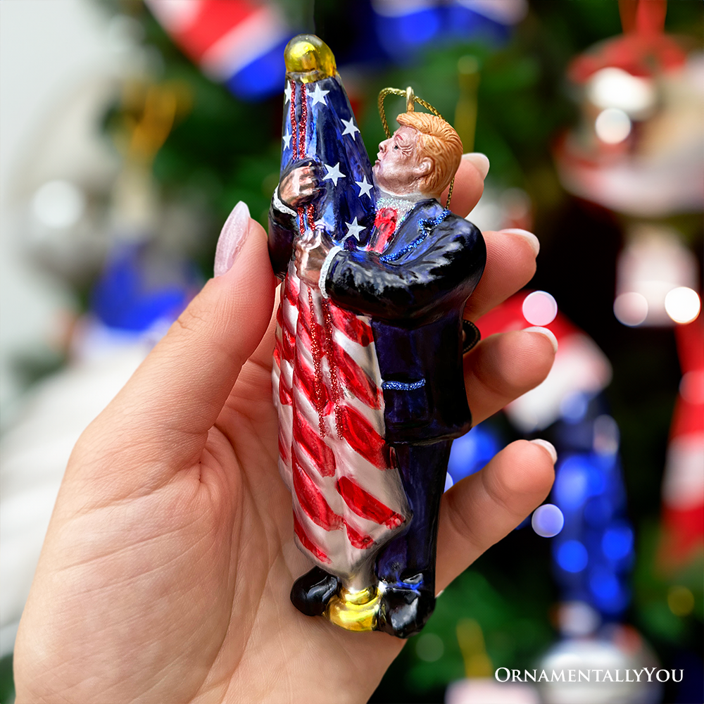 OrnamentallyYou - Donald Trump Kissing the American Flag Glass Ornament is backordered. It will be shipped when back in stock.
