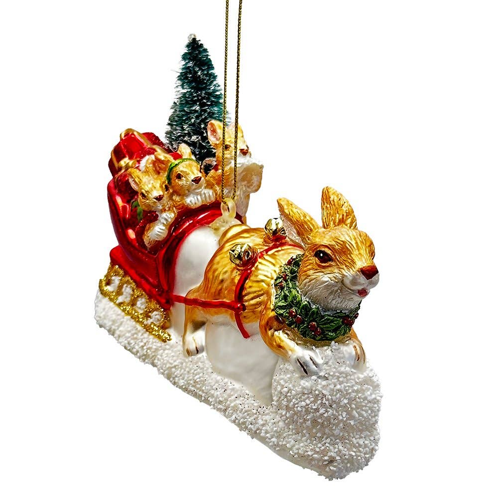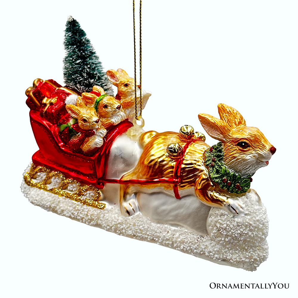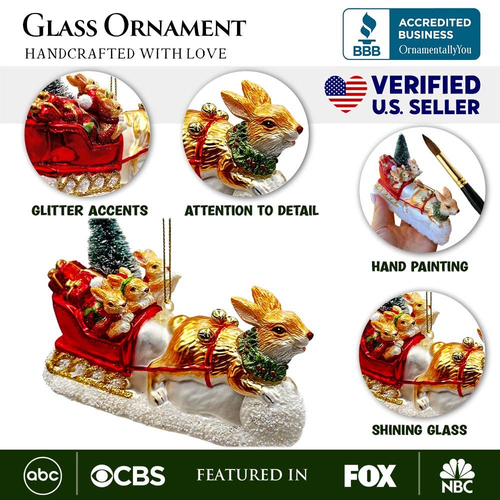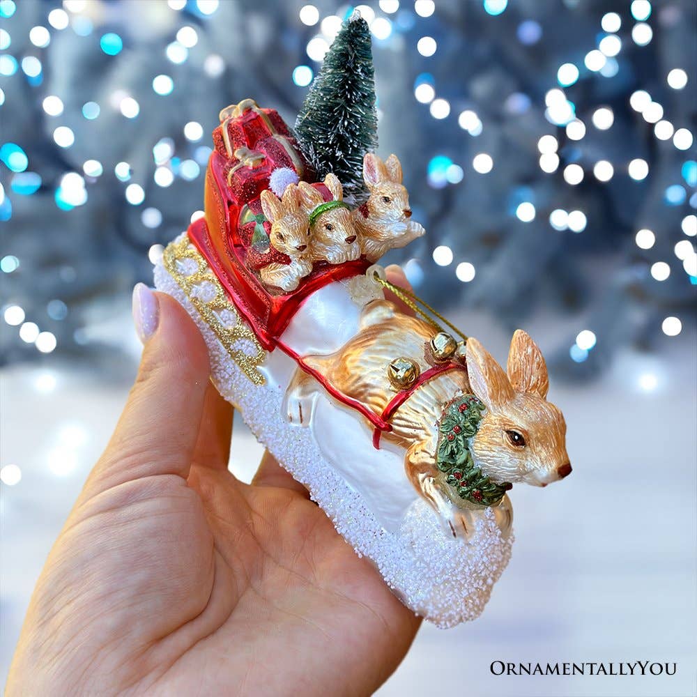 OrnamentallyYou - Enchanting Hare and Sleigh Glass Christmas Ornament is backordered. It will be shipped when back in stock.