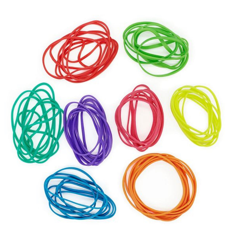 Add some color to your office supplies with this handy set of rainbow rubber bands.
