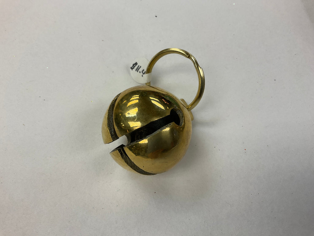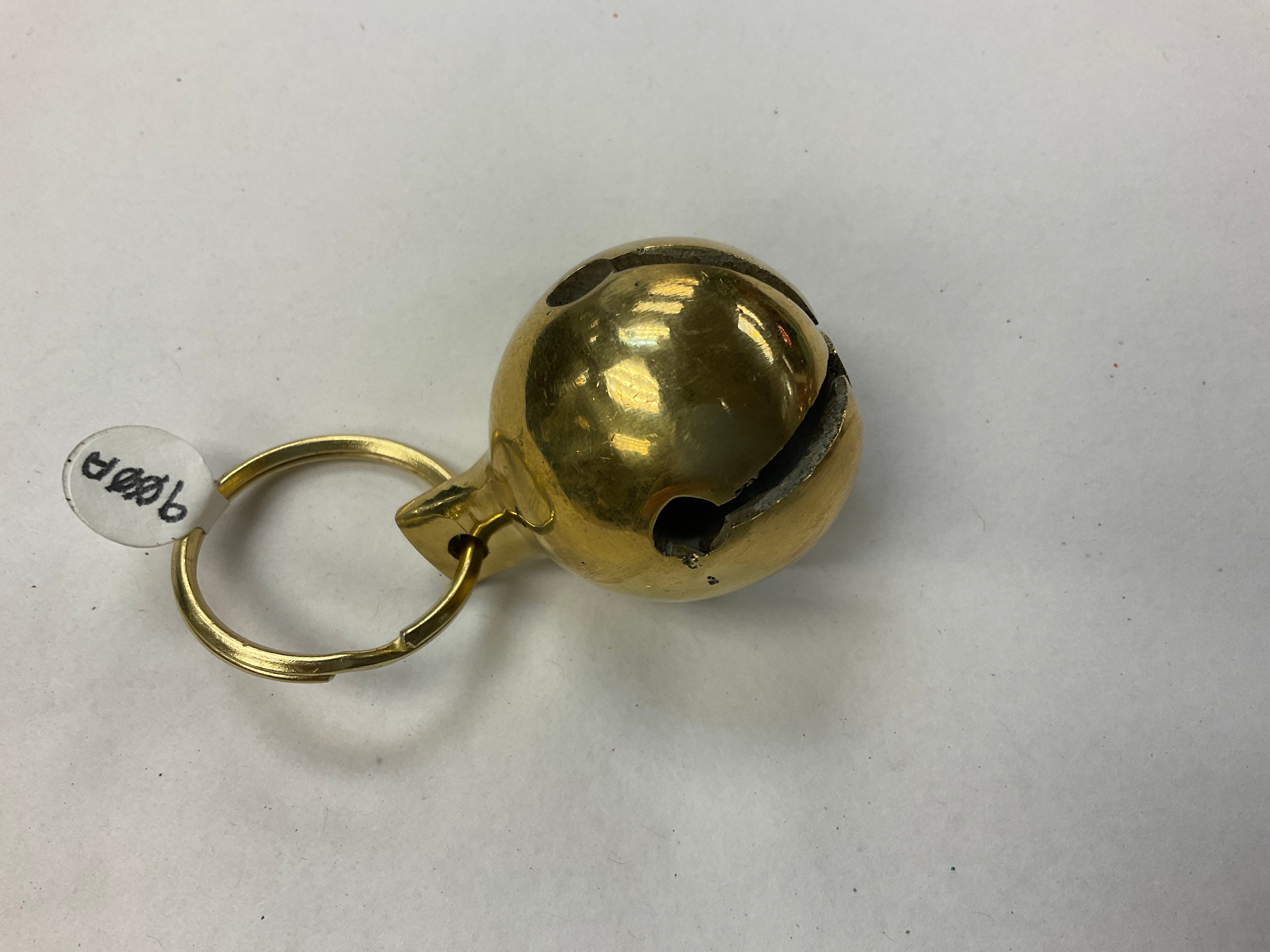 A heavy duty brass bell with a key ring. Limited edition by BELSNICKEL Barn, made in the USA. 1.5” brass bell, 3” total length.